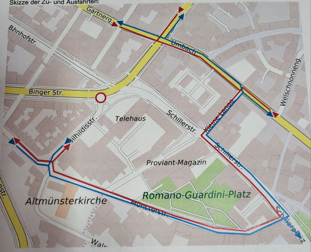 leider hat uns die Mainzer Mobilität heute mitgeteilt, dass die Zufahrt zur Bilhildisstrasse vom Münsterplatz aus ab 29.10.2025 - 22. 11.2025 gespert ist.